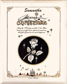 Share the warm holiday spirit with this adorable Christmas plaque. The artwork is hand drawn and etched into this solid bass wood plaque, revealing a wood burned background at the center. French provincial edges finish this wooden plaque with a clean style. Make this an extra special keepsake by personalizing it with the name of a recipient and heartfelt holiday wishes.
